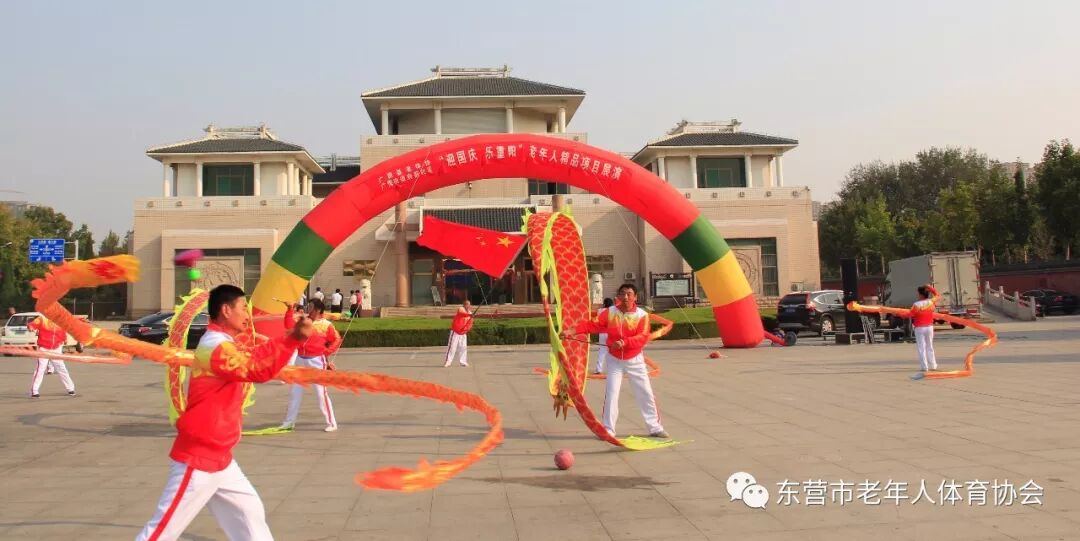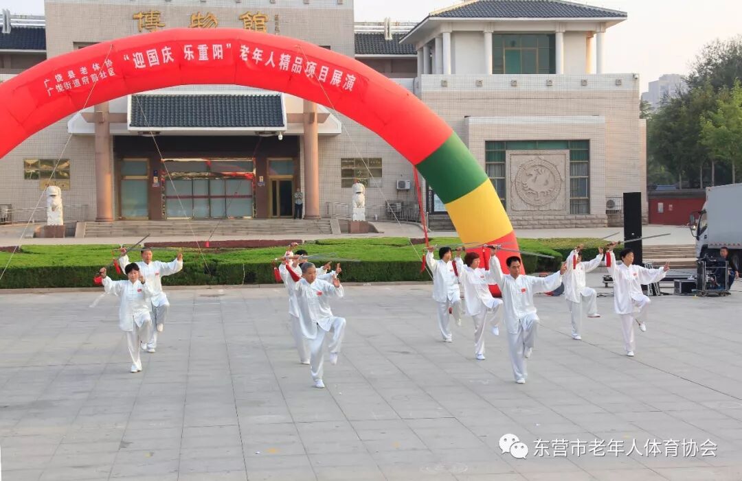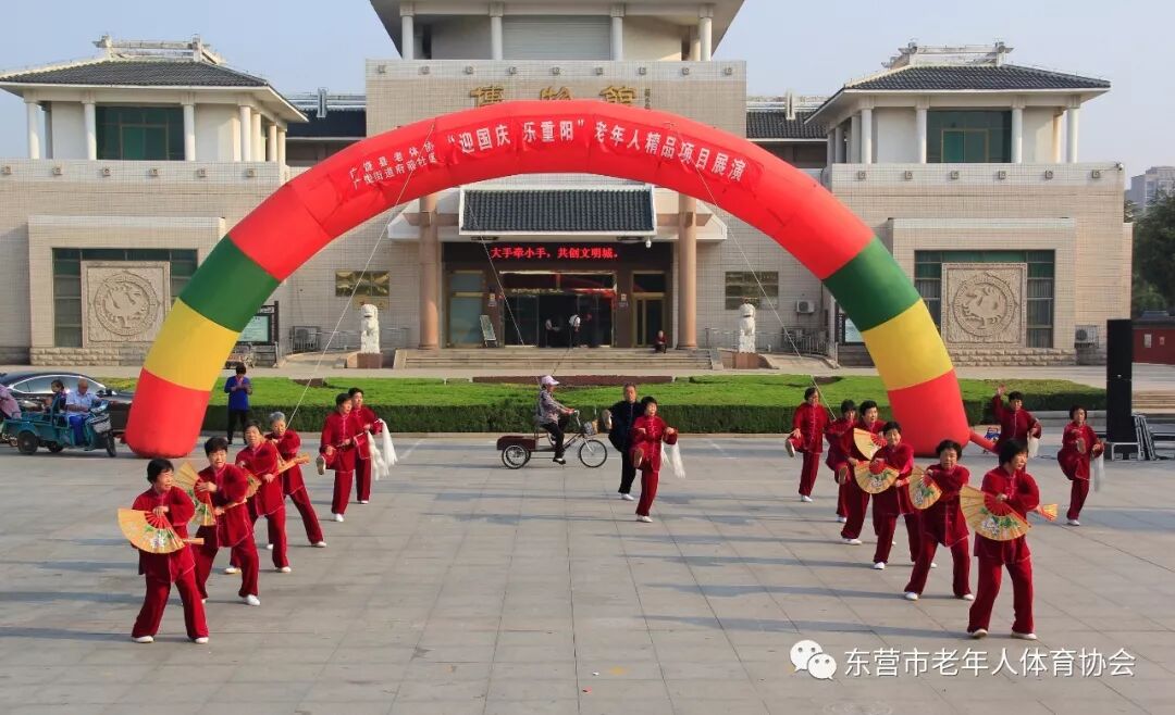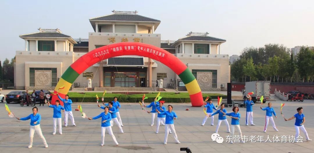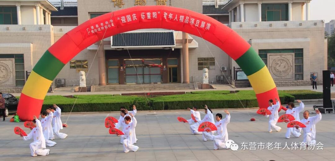 为热烈庆祝伟大祖国70华诞,喜迎九九重阳佳节,全面推动全民健身活动深入开展,切实提高广大人民健康水平,营造节日欢乐祥和氛围,9月29日早晨6点至8点,广饶县老体协协同广饶街道府前社区在东营市博物馆文化广场隆重举办“迎国庆,乐重阳”健身项目精品展演。