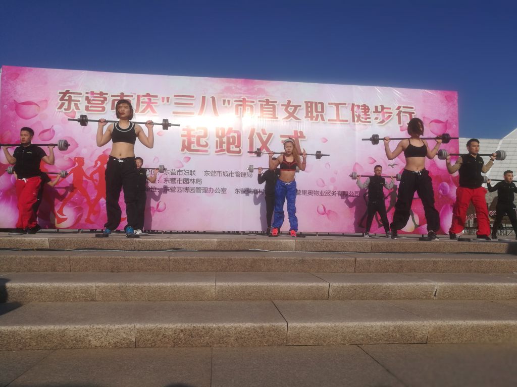 3月8日,东营市庆“三八”市直女职工健步行,如期在园博园举行。市健身运动协会积极准备,在起跑仪式上为参赛选手带来了精彩的杠铃塑形展示。