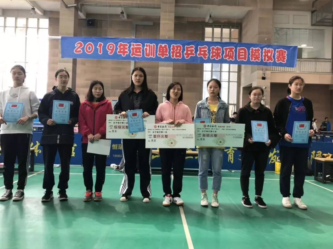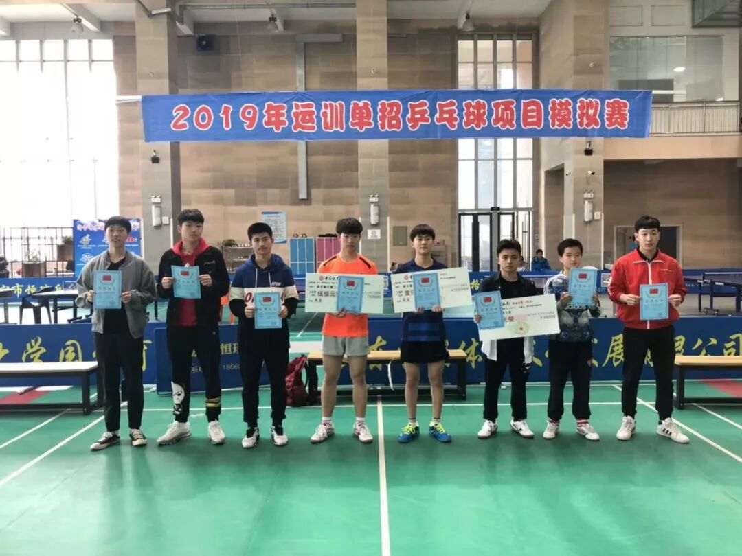 来自山东、浙江、安徽、山西、甘肃、河南、江苏等地近百余名乒乓球特长生参加了本次模拟赛,最终付琛武、韩博、毛越涵获得男子组前三名,崔贤花、赵佳露、王雨萌获得女子组前三名。