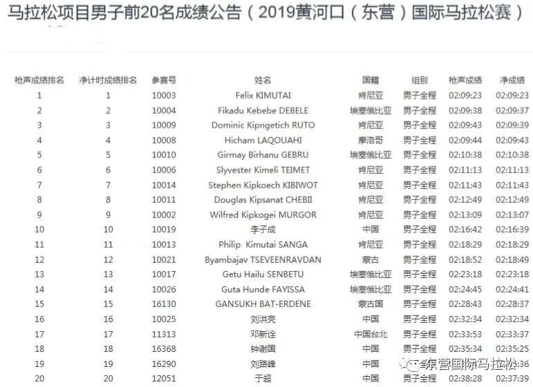 中国万达•2019黄河口(东营)国际马拉松赛运动员奖金发放须知