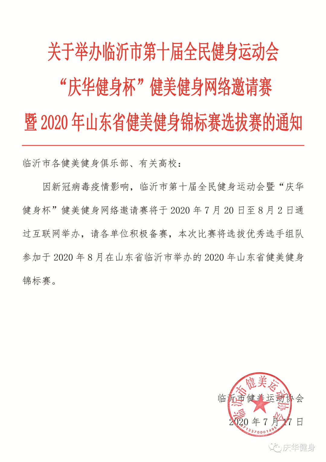 【报名越早,成绩越好!】临沂市健美健身网络邀请赛报名开始啦!