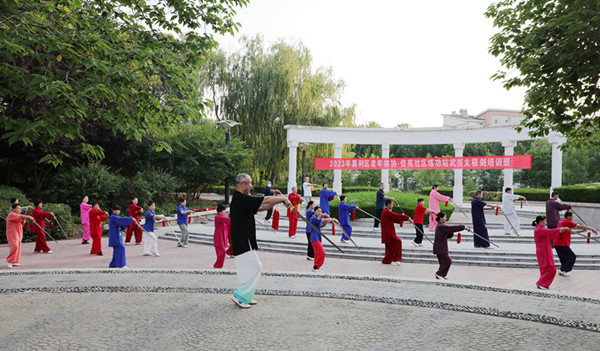 剑花迎朝阳 吐纳更健康 ——东营市垦利区老年体协佳苑社区练功站武当太极剑培训班