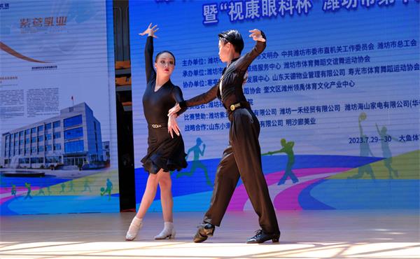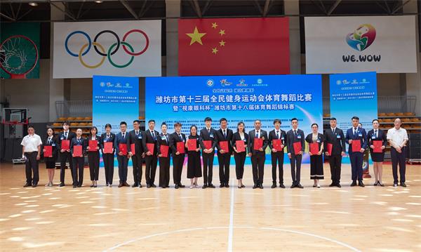 2023年7月30日,由潍坊市体育局、潍坊市文明办、中共潍坊市委市直机关工作委员会、潍坊市总工会、共青团潍坊市委、潍坊市妇联、潍坊市教育局、潍坊市体育总会主办, 潍坊市体育总会联络服务中心、潍坊市体育舞蹈交谊舞运动协会承办,寒亭区体育事业发展中心、山东天德物业管理有限公司、高密市体育舞蹈运动协会、寿光市体育舞蹈运动协会、安丘市体育舞蹈运动协会、青州市体育舞蹈协会、奎文区潍州领禹体育文化产业中心协办的中国体育彩票潍坊市第十三届全民健身运动会体育舞蹈比赛暨“视康眼科杯”潍坊市第十八届体育舞蹈锦标赛在寒亭区举行。