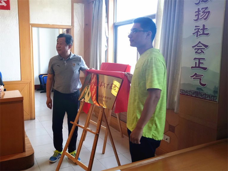 最后,淄川区民政局副局长卢丽伟、击剑协会新当选会长何剑为击剑运动协会揭牌;市击剑总教练张峰、区竞技体校校长为淄川区击剑后备人才基地揭牌;市体校训练科张炳刚科长、教体局副局长齐顺山共同为淄博市优秀运动队击剑后备人才基地揭牌。(淄川区体育总 国峰)