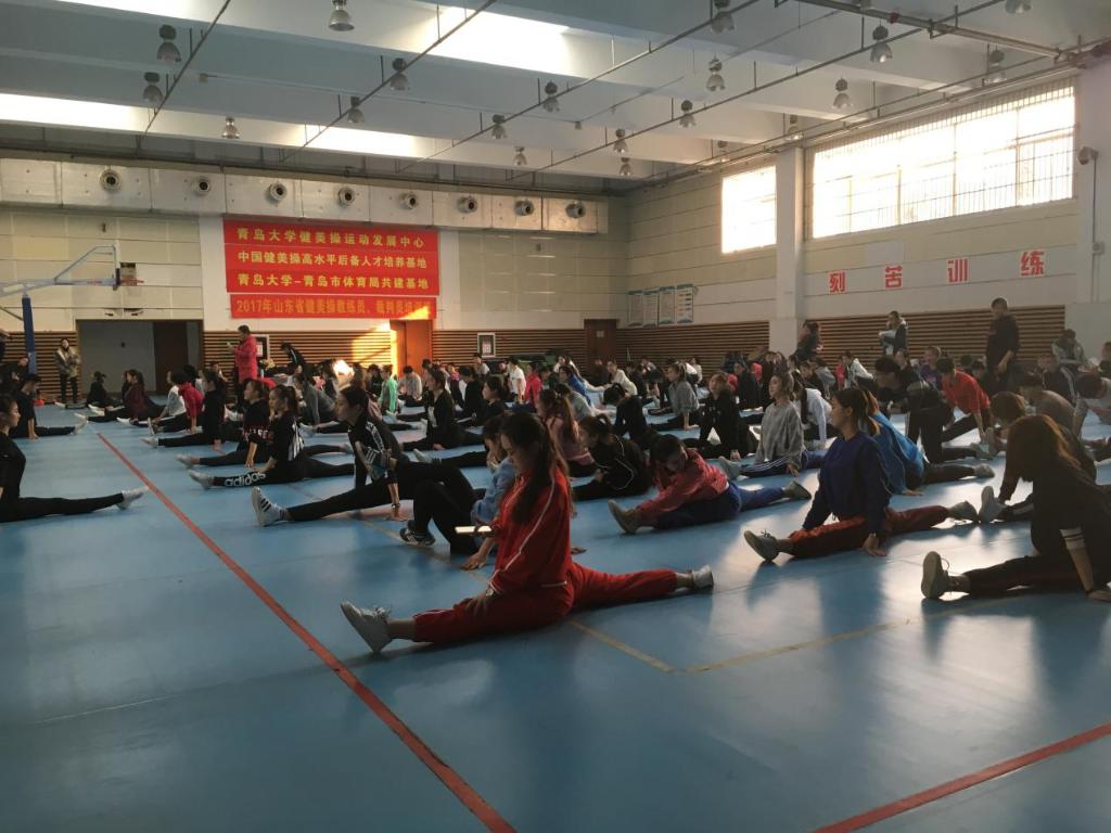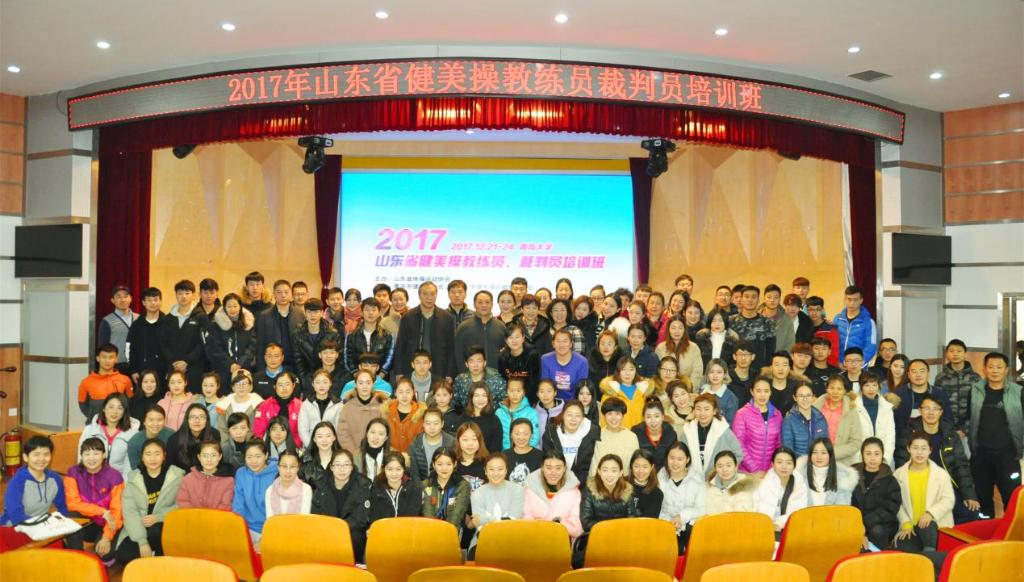 12月21日-12月24日2017年山东省健美操教练员、裁判员培训班在美丽的青岛大学举办。 本次培训班由山东省体操运动协会主办,青岛市健美操协会、青岛大学健美操运动发展中心承办。山东省体操协会秘书长孙炳辉先生、青大学体育学院院长管泽毅先生以及青岛大学健美操发展中心主任、青岛市健美操协会主席张英女士出席了开班仪式。来自全省10个地市40多个单位的近140名优秀骨干力量参加了本次培训。